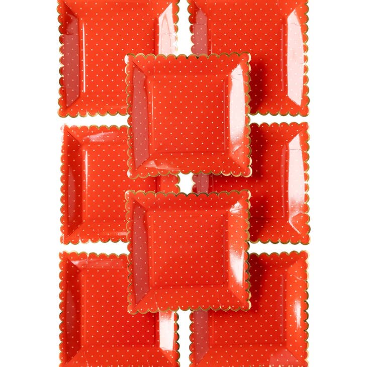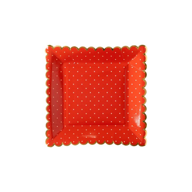 Introducing the Red With Polka Dot Scallop Plate! This beauty is perfect for serving up a delicious meal. The red color is sure to add some excitement to your table, while the polka dot scallops add a fun touch. Plus, the scalloped edge is perfect for holding your food in place. Whether you're serving up burgers and fries or a delicious dessert, this plate is sure to make your meal a success. So don't wait any longer, order your Red With Polka Dot Scallop Plate today!