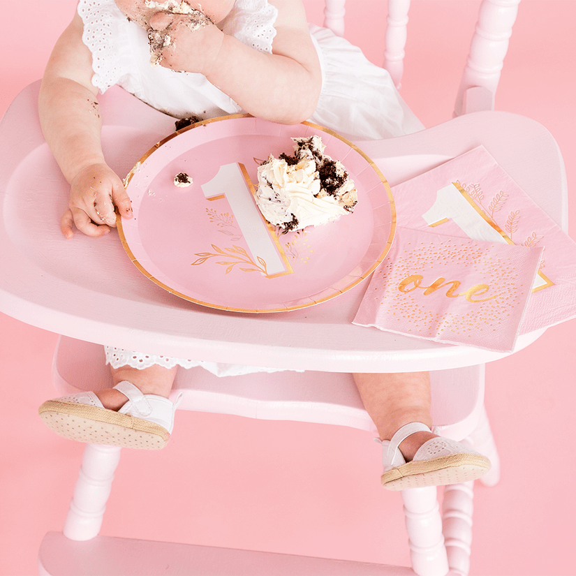 These pink cocktail napkins are perfect for serving with cake and beverages at your baby's first birthday bash!