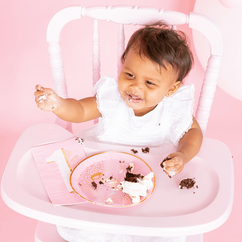 These pink guest napkins are perfect for serving with cake and beverages at your baby's first birthday bash!