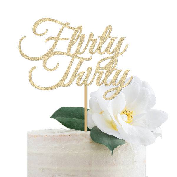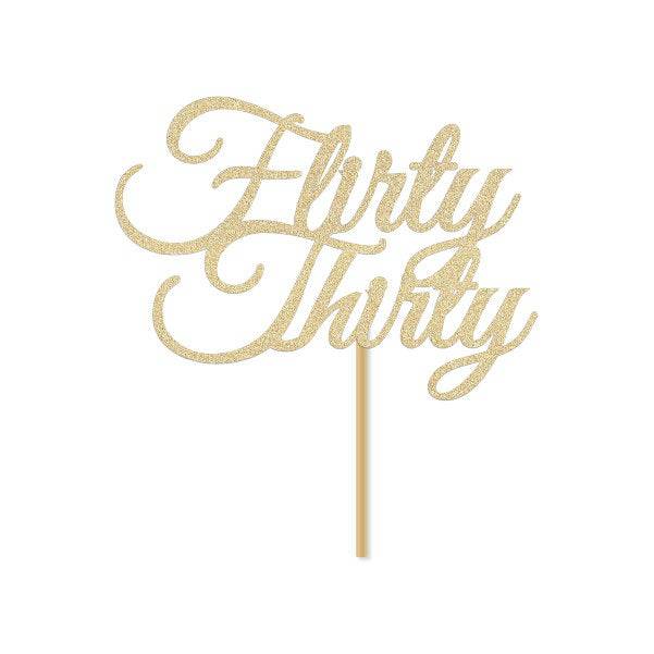 This Flirty Thirty cake topper is the perfect way to celebrate your special day with fabulous glitter and cake! The glitter lettering features sparkle accents that are sure to shine on your big day. Ideal for turning any cake into a milestone birthday celebration!