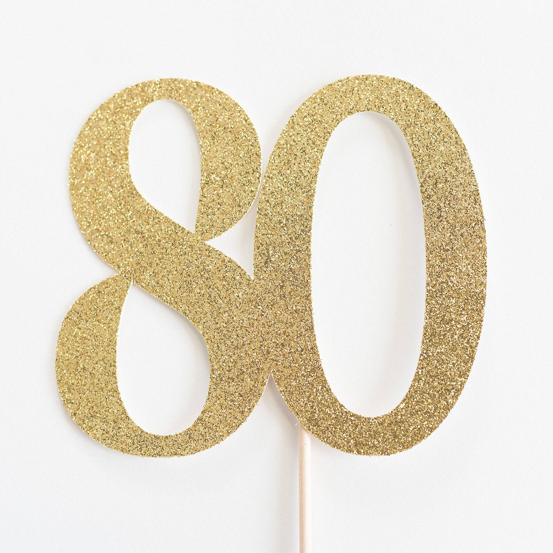 Celebrate your 80th birthday in style with this gold 80 cake topper. A perfect compliment to your other eightieth birthday party supplies. Can be used for floral centerpieces or on a food or dessert display.