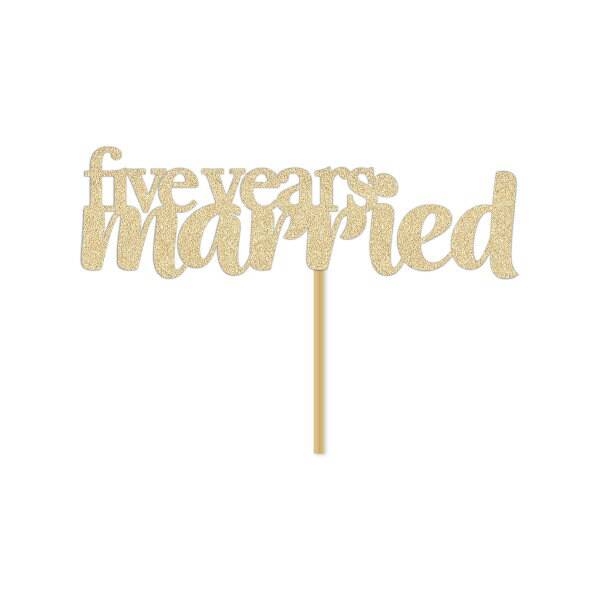 The perfect way to celebrate your fifth anniversary is with a beautiful cake. This cake topper will guarantee the most romantic, most sentimental anniversary party your guests have ever seen. Guests can enjoy their slice of cake while they admire this shimmering gold topper with its elegant design and sparkling glitter.