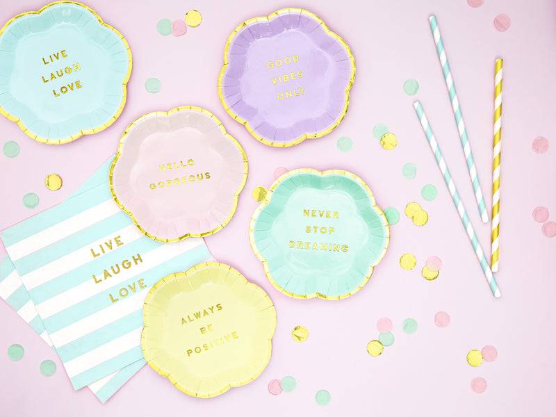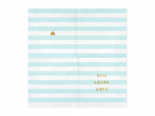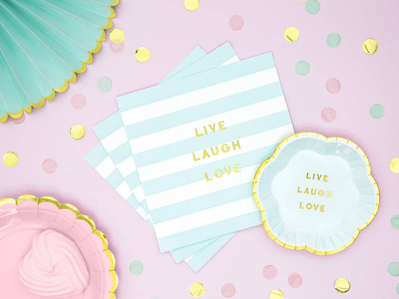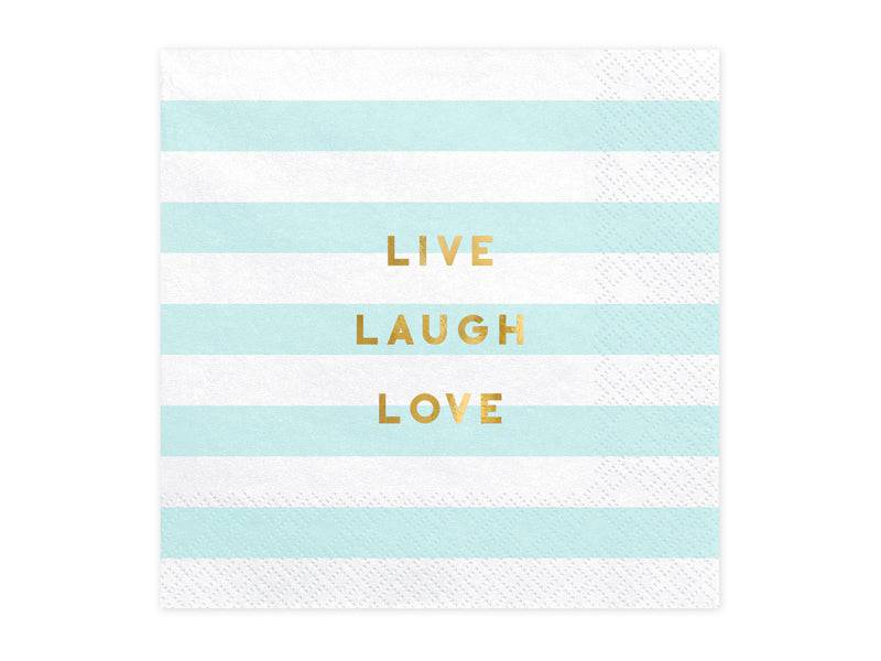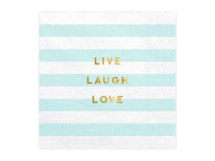 These light blue paper napkins are perfect for any bridal shower, baby shower, birthday, or any other celebration. They're designed with a fun and trendy Live Laugh Love inscription that is sure to make your event memorable!