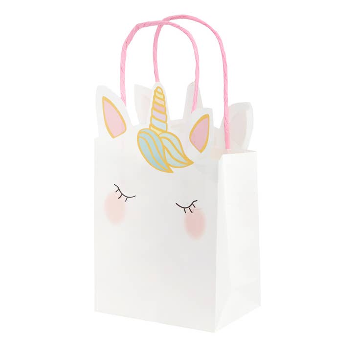 Pack of 8 Unicorn Party Bags by Talking Tables. Send your guests home with a slice of birthday cake and party favors with these unicorn kids party bags. Alternatively, use as an eco-friendly alternative to wrapping paper and pop a present inside as a gift bag.