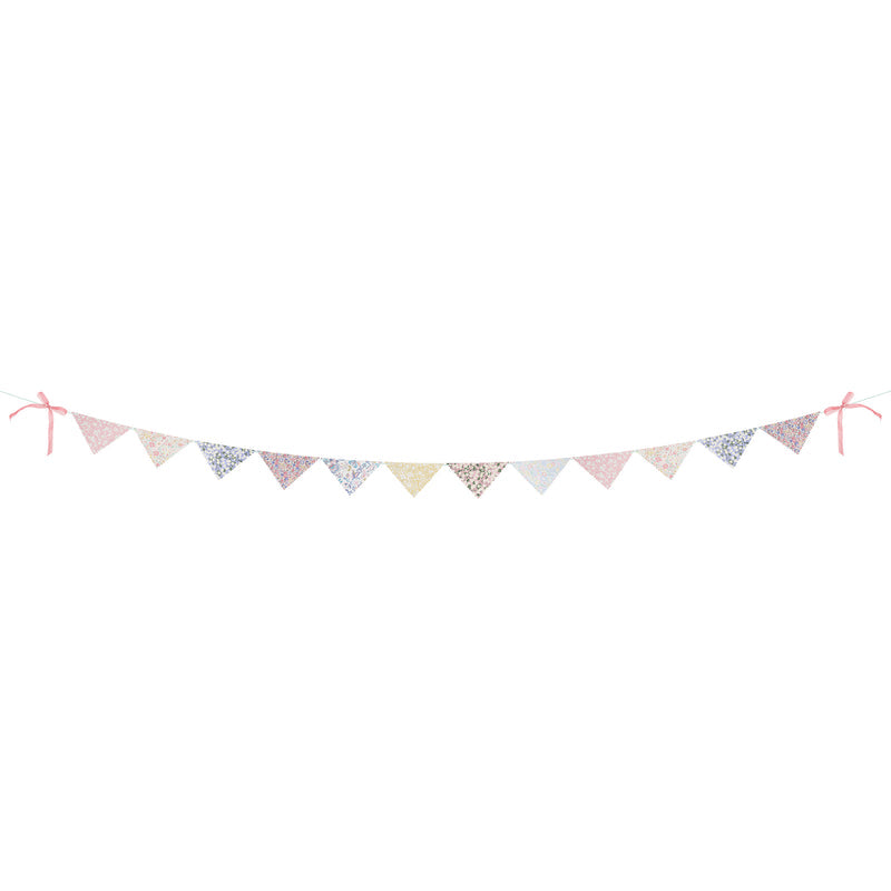 Join forces with Liberty for one-of-a-kind bunting that will elevate any occasion! Exquisite floral Liberty prints adorn both the garland and box, paired with charming scalloped pennants, pretty pink bows, and a touch of green velvet. Perfect for all ages and celebrations, this versatile garland adds a touch of sophistication to any party. Use it as a table runner, wall hanging, porch or garden decor, and keep it up all year round. Known for their innovative designs and love for craftsmanship, Liberty has been a creative haven since 1875. Their prints, crafted in London's heart, are a testament to true artistic exploration.