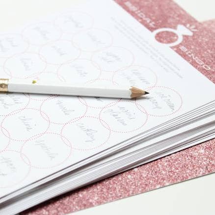 Add some fun to your bridal shower or bachelorette as the bride opens gifts with Bridal Bingo! If you've never played Bridal Bingo, it's simple! Distribute bingo sheets to the guests and have them fill out each space with different items that they think the bride will receive. As gifts are opened, they cross off the items. Five in a row wins!