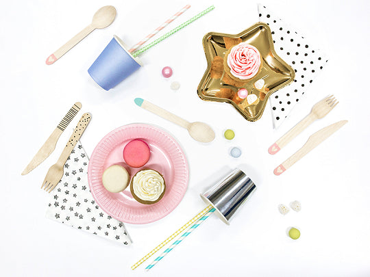 Celebrate with our adorable blush pink heart cutlery set. Made from eco-friendly, compostable materials and available in a variety of pastel colors, this set is perfect for your next birthday, baby shower, or celebration. This cutlery set is designed to be cute and fun, making it the perfect addition to any table setting, and you'll feel great using them!