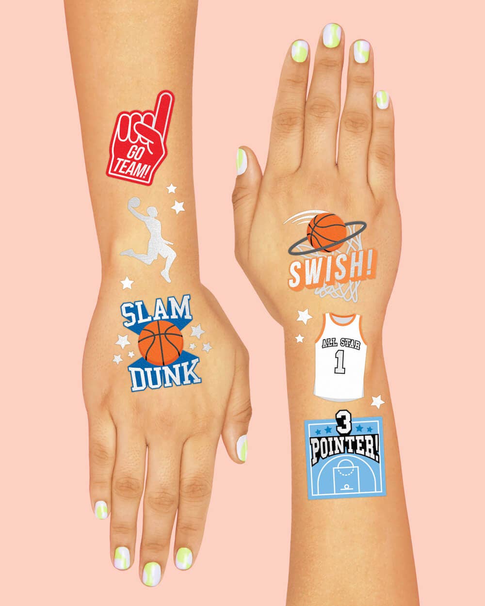 MVP of the Party. These basketball tats are the perfect team sport activity or party accessory! 58 designs total means no rookie or all star gets left behind - call your whole team, they're gonna wanna huddle up fast because these tats are a slam dunk!