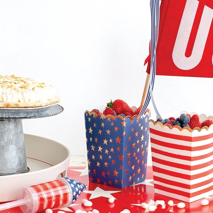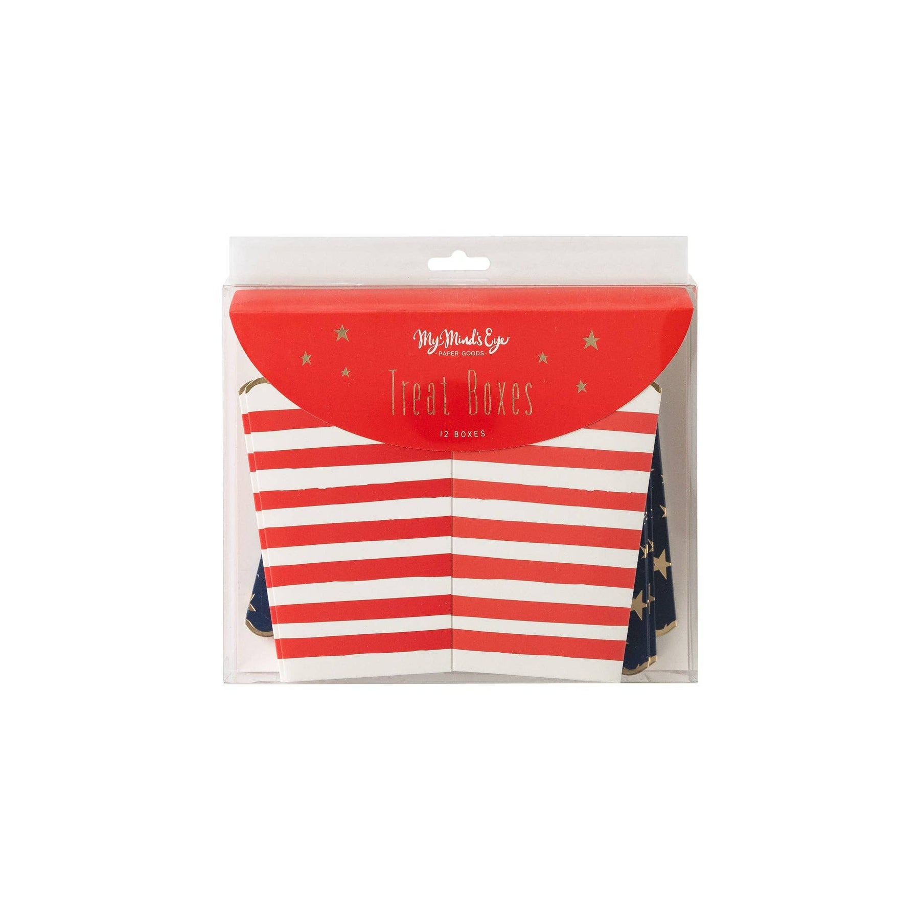Get ready to celebrate the good ole' USA with our Stars and Stripes Treat Boxes! These designer boxes are perfect for all your party favor and treat needs this summer. Featuring the iconic stars and stripes of the American flag, these boxes will add that extra touch of patriotism to your 4th of July festivities.