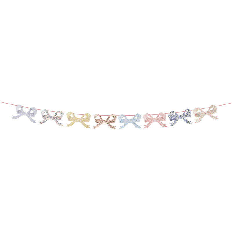 We've partnered up with Liberty to bring you a lovely bow garland. Bows are still trending, making this the perfect combination of a patterned decoration and a modern twist. Eight bow-shaped flags, featuring gorgeous floral Liberty prints, are strung along a dusty pink velvet ribbon. This garland is great for all kinds of occasions, including baby showers, bridal showers, or any celebration where you want an elegant touch. Use it over and over again on a table, in a doorway, in a window display, or even in the garden. Liberty has been a haven for artistic shoppers since 1875, always promoting innovation and celebrating skilled craftsmanship. Their prints are hand-crafted in the heart of London by their talented design team.