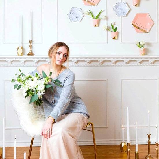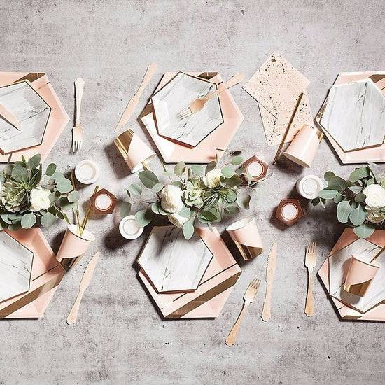 Inset with gold stripes on elegant hexagon, make your guests blush while you shine.