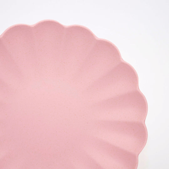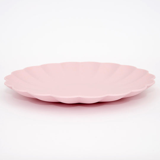 If you're looking for reusable party plates, then these are a stylish choice. These fabulous pink colored reusable plates by Meri Meri are crafted from a bamboo fiber mix, with a sensational scallop shape which looks and feels wonderful.