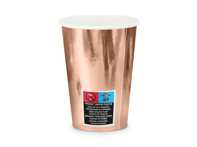 • Paper cups in rose gold colour with white inscription She said yes!,