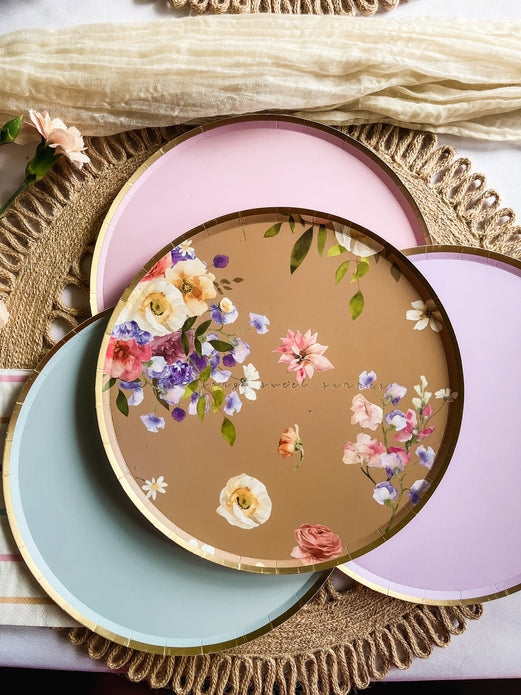 Add a touch of botanical elegance to your table with our Summer Floral Plate. Its charming floral design in beige is accented with delicate gold trim, adding a chic and adorable touch to any occasion. Perfect for baby showers, bridal showers, birthdays, or simply adding a touch of beauty to your everyday meals.