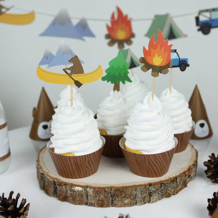 Is your tiny explorer hitting a big birthday? Make your outdoorsy themed celebration even more special with this cupcake topper set!