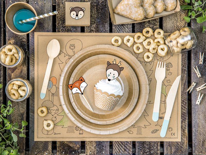 - 6 toppers: fox, deer, raccoon, owl, beaver and hedgehog (height from 3" to 4")