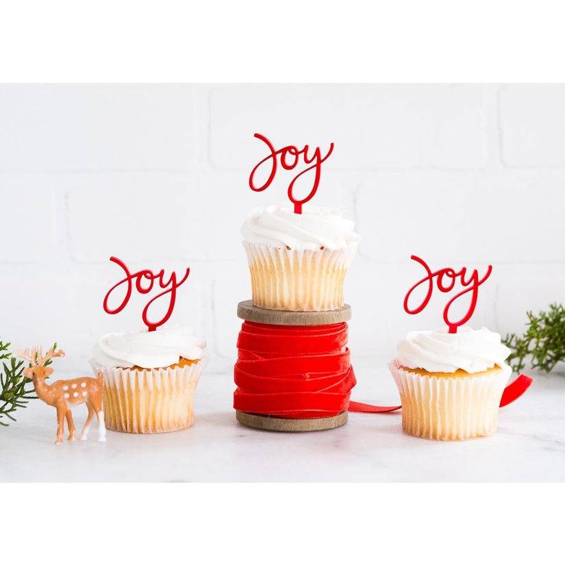 Spread the holiday joy to your friends and neighbors with these red acrylic cupcake toppers!