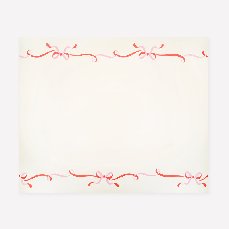 Pink and red ribbon bows are the perfect tableware design for an effortlessly chic Christmas table. The rich warm red brings classic festive charm, the soft pink gives a contemporary twist, and the bow design adds fashionable flair. This paper table runner is perfect to instantly add a stylish touch to your meal. It comes in a long piece, ready for you to cut to size.