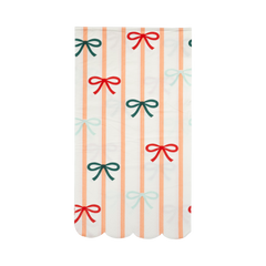 These festive dinner napkins feature charming bows and playful stripes, making them the perfect addition to any Christmas party. Add a touch of whimsy to your table setting with these scalloped napkins.