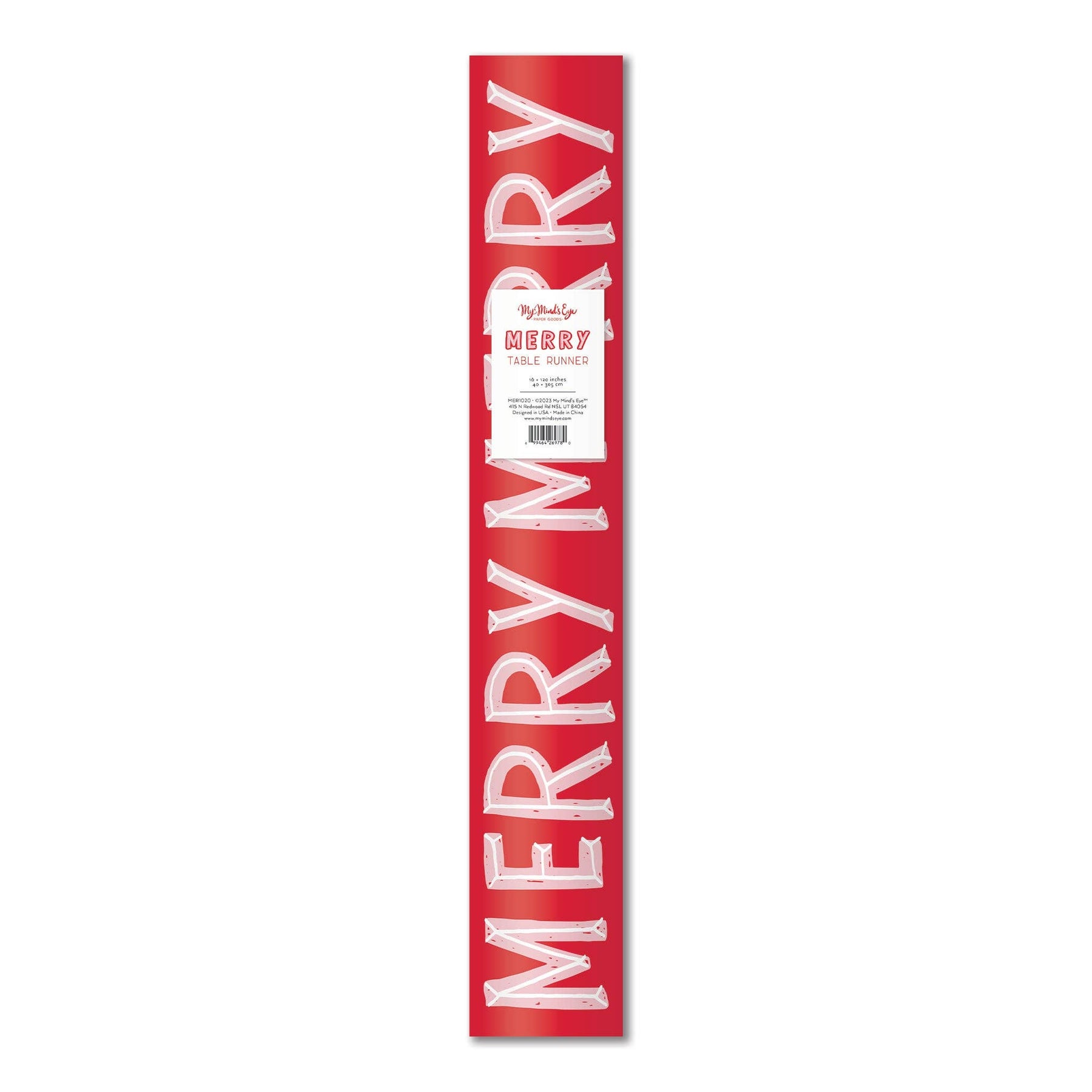 Set a merry table this Christmas with this merry table runner. Featuring bright and festive colors this table runner is the perfect way to add merriment to holiday festivities at your table this December.