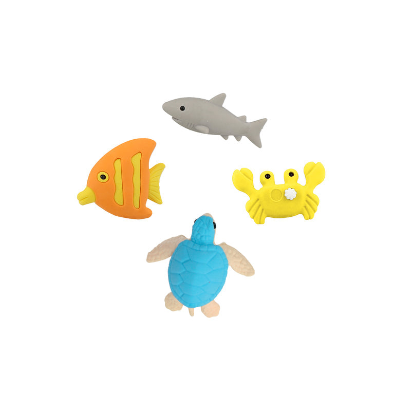 - The box is designed to look like an under the sea scene, with the sea themed erasers 'swimming' inside
