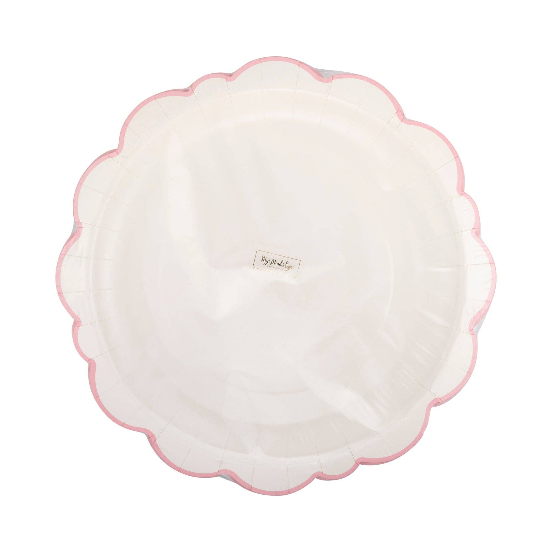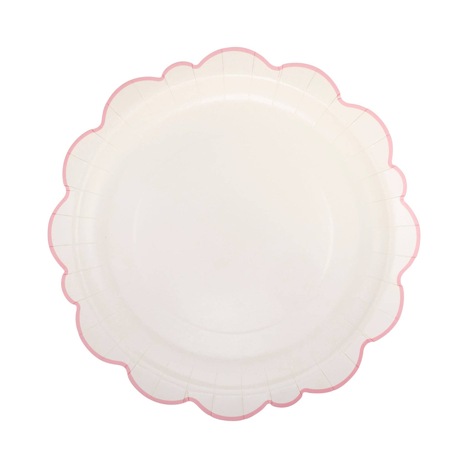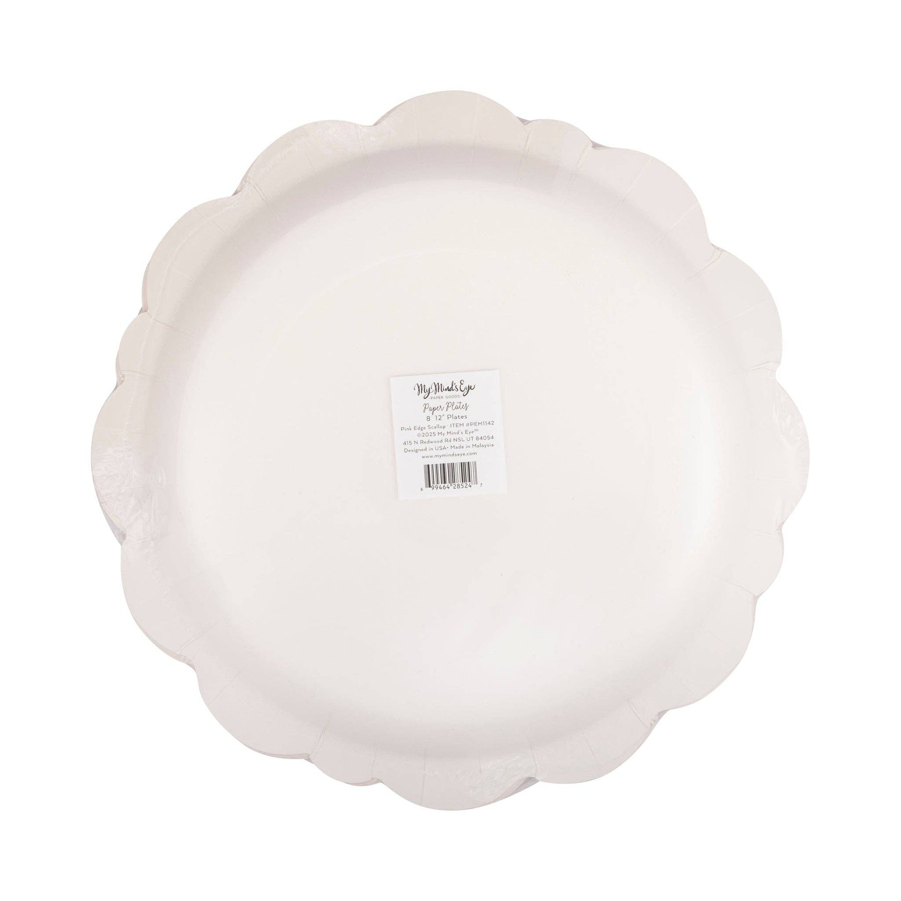 Bring a splash of romance to your table with our Pembroke Pink Edge Scallop 12" Plate! Boasting a delicate design, this plate is a must-have for Valentine's Day or any special occasion. A delightful addition to any collection, it's bound to catch attention with its playful pink edges. Love at first sight!