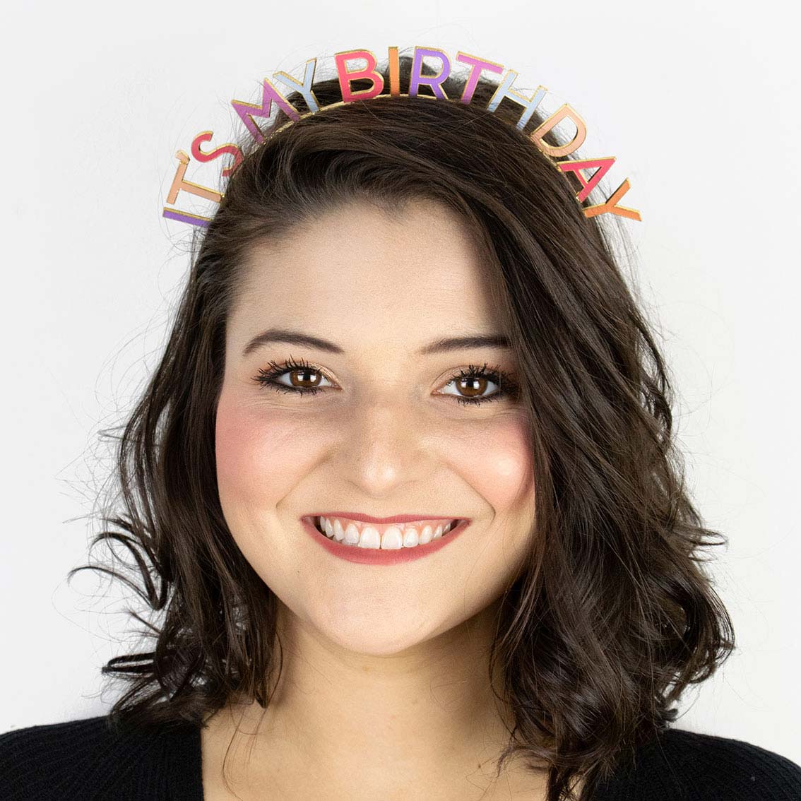 Make sure everyone knows its your birthday with this pretty pink ‘It’s my Birthday’ headband by Talking Tables. This colorful headband accessory is gold plated with enamel colored letters. A great birthday gift for an evening out, birthday selfie with friends and family or for a Virtual Zoom Party. It's unisex design makes it perfect for boys, girls, men or women. Perfect to reuse for girls, women and birthdays of any age! Shop the Rose collection for matching cups, plates, napkins, candles and party decorations!