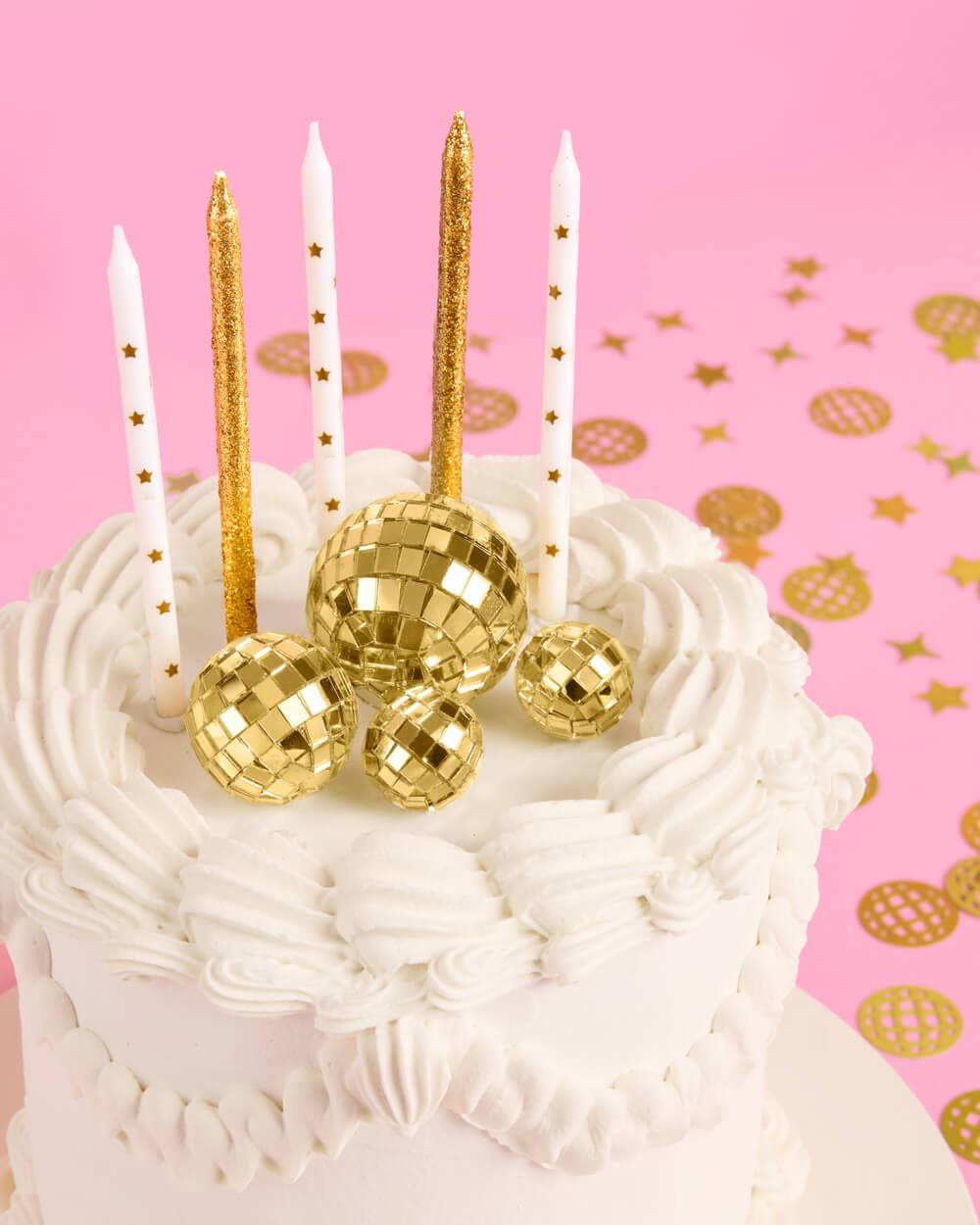 Get ready to dance! Our shiny gold disco ball cake toppers bring the party vibe straight to your celebration. Channel your inner dancing queen and keep the groove alive all night long. The music’s pumping and the fun’s just getting started—are you ready to boogie?