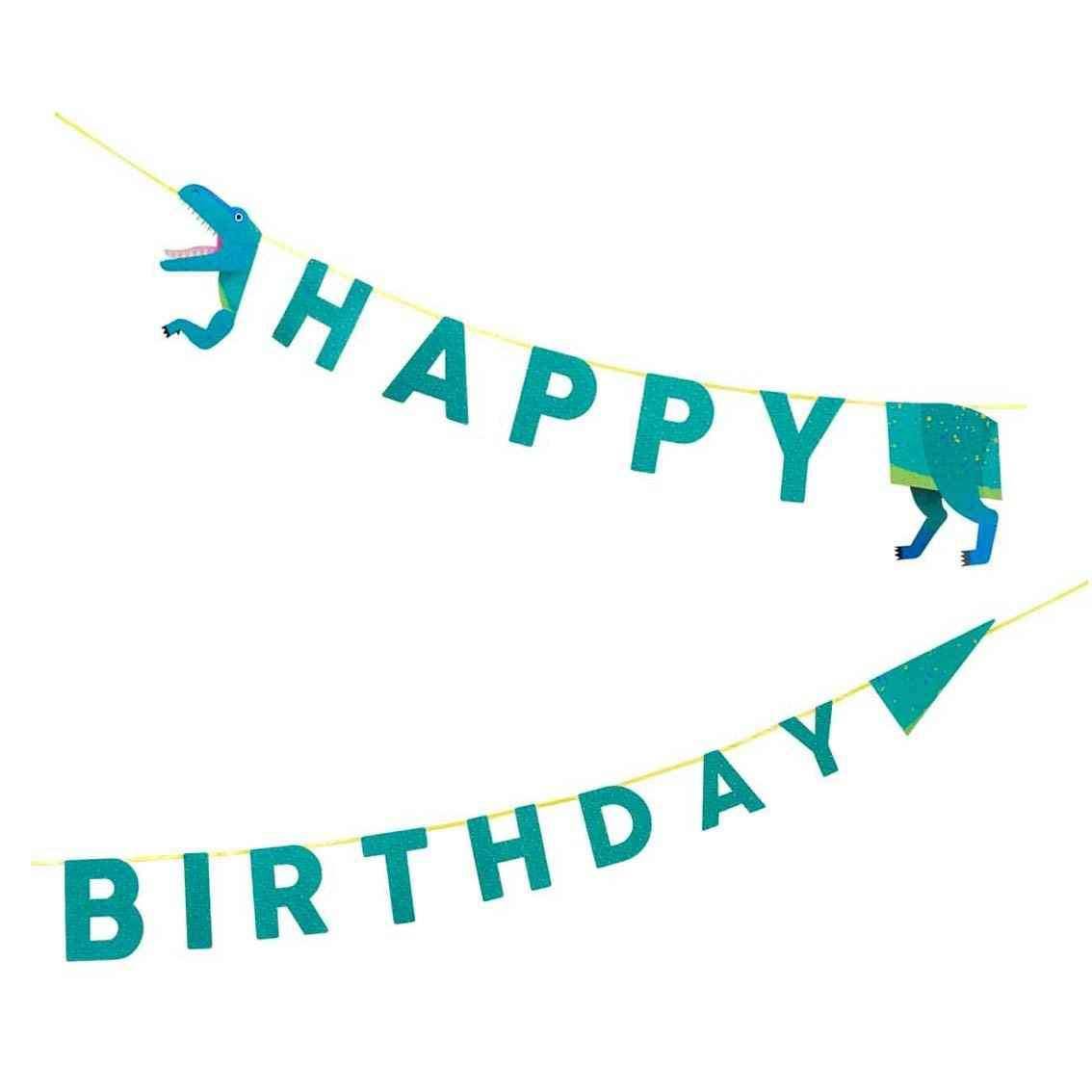 This cute and colorful dinosaur Happy Birthday banner will be a hit with your little dino lover. They can be paired with the rest of this fun dinosaur party line.