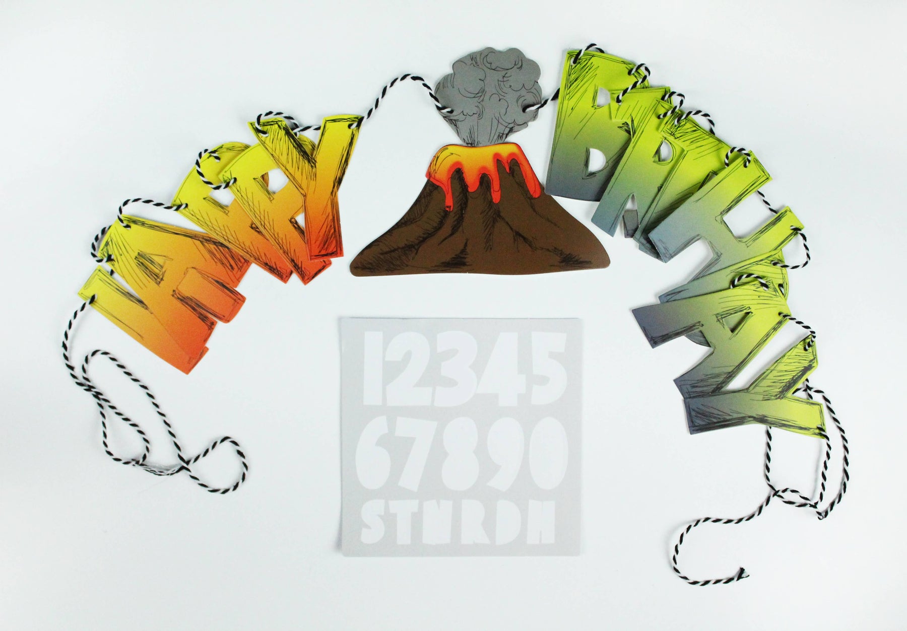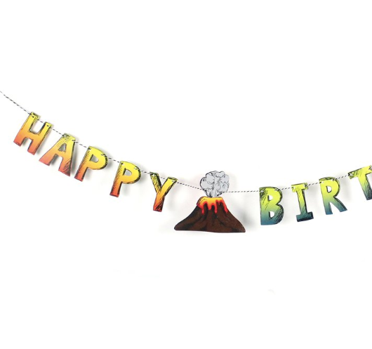 Introducing the Dino Banner! Perfect for Dinosaur or Volcano parties, this volcano-themed birthday banner features letters that appear cut out from a sketchbook. Decorate your space with this eye-catching banner and bring the prehistoric party to life!