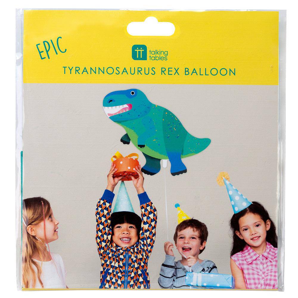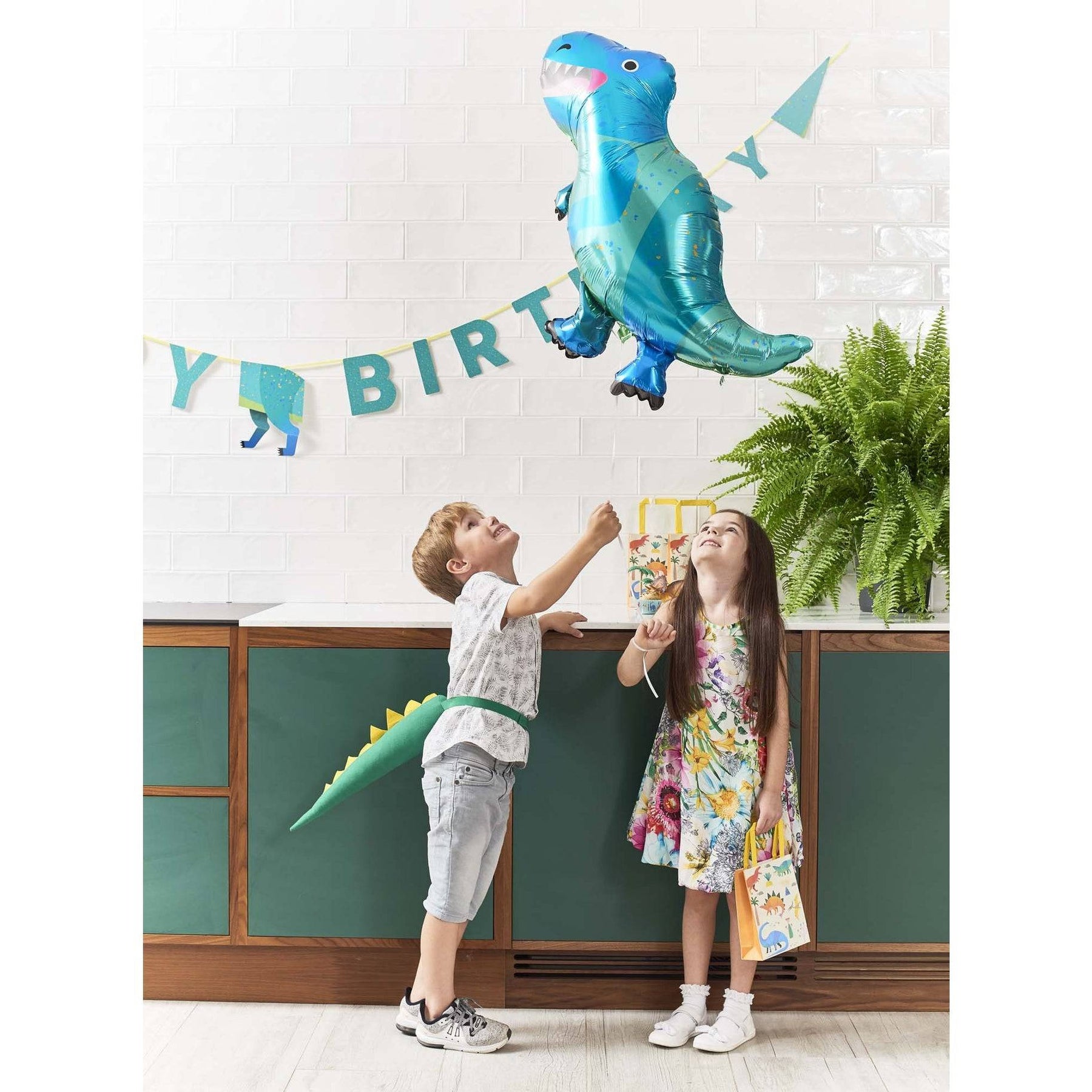 A roarsome addition to your party. This larger than life dinosaur balloon by Talking Tables is the perfect party centrepiece or gift. For use with either air or helium, this foil balloon is sized 90cm x 55cm when blown up, and comes with an inflating straw and 2m of ribbon.