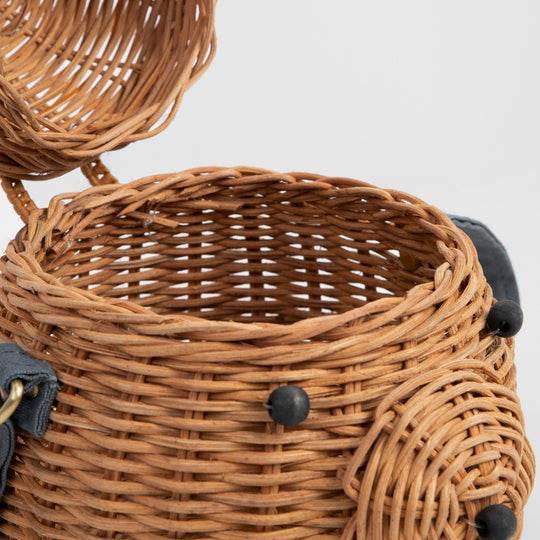 Kids (and adults) will absolutely adore this charming bear basket bag. It has a lovely round basket shape, with a delightful bear face with 3D nose and 3D ears.