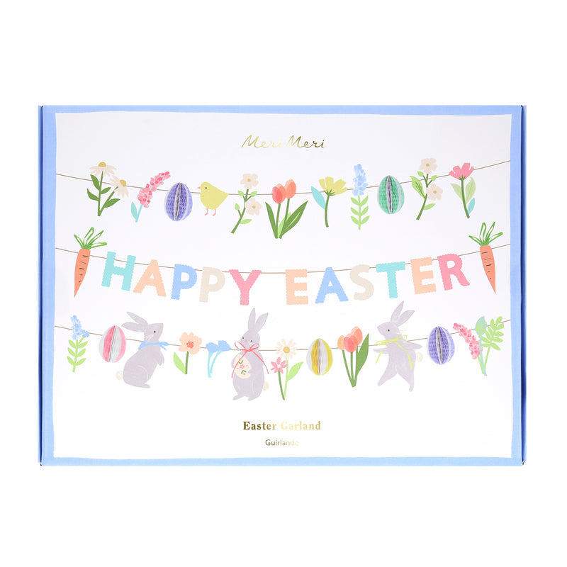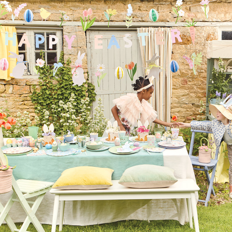 Welcome to our statement Easter garland! Featuring classic Easter icons and letters in pretty pastels, this party-in-a-box decoration is beautifully embellished with fun raffia details and honeycomb eggs for extra visual and tactile appeal. Hang it in your porch or party room for maximum impact, or separate the strings to decorate your house, garden or Easter party table. Pack it away after use and bring it out each year to instantly feel hoppy!