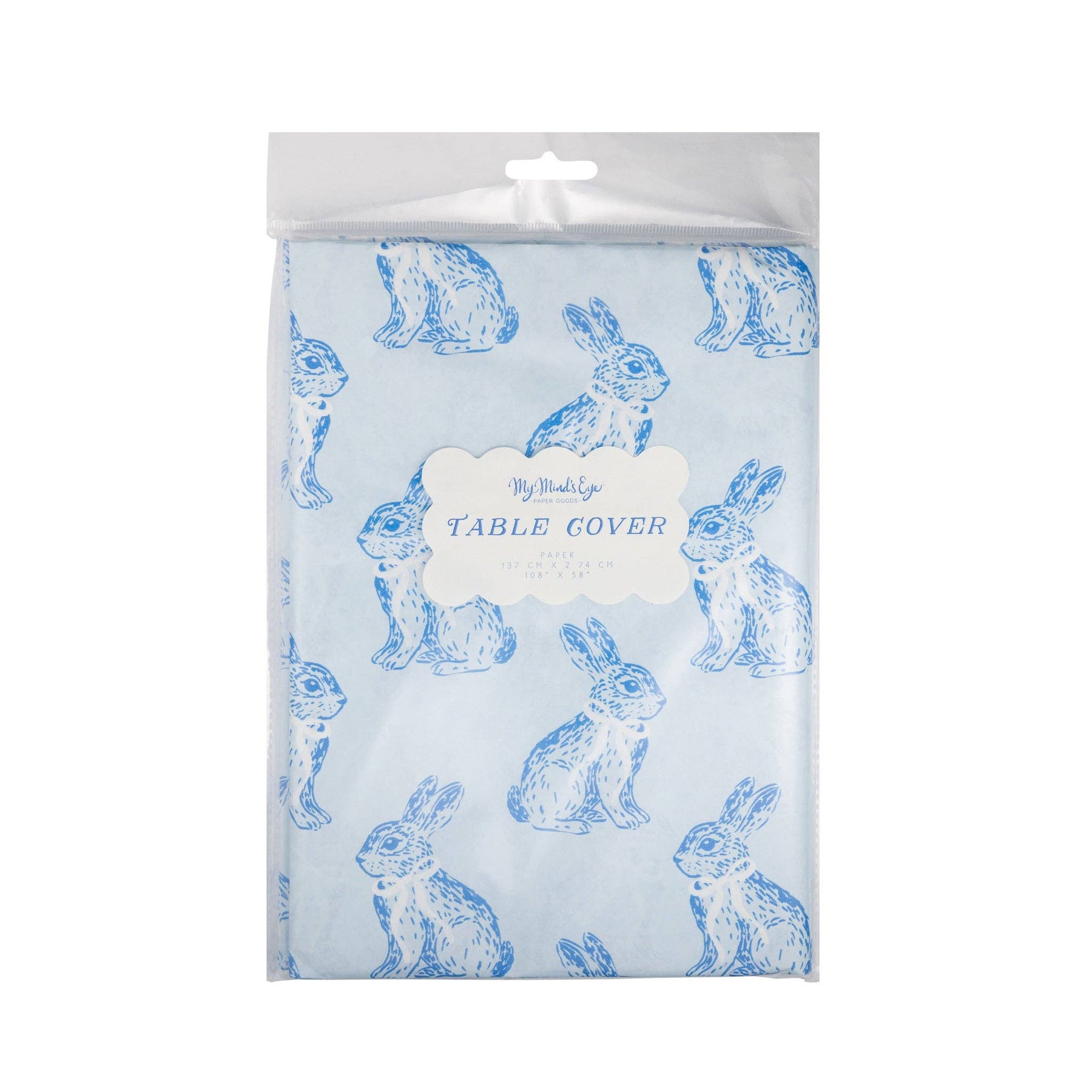 Transform your Easter table with this enchanting Blue Bunny Toile tablecover. Showcasing an elegant toile design adorned with sweet bunnies rendered in calming blue hues, this piece brings sophisticated charm and seasonal flair to your dining space. Perfect for creating a memorable, festive atmosphere at your spring gatherings.