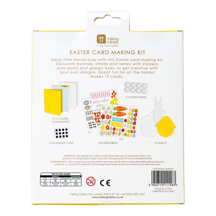 - Each kit contains 4 x bunny cards, 4 x lamb cards, 4 x chick cards, googley eyes, pom poms and adhesive stickers.