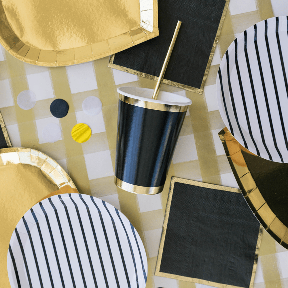 These versatile, handsome black and gold napkins would be perfect for a milestone birthday or new years celebration among friends.