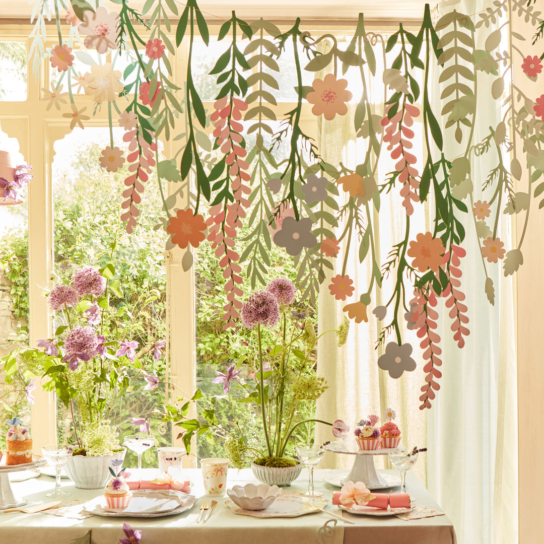 Illuminate your space with the stunning floral paper backdrop. This versatile garland can be hung on a wall, used as a headboard effect behind a bed , or draped above a party table. Whether it's a bridal shower or everyday room decoration, this backdrop adds a touch of floral elegance to any setting. Perfect for photo backdrops or as a thoughtful gift for floral decor enthusiasts.