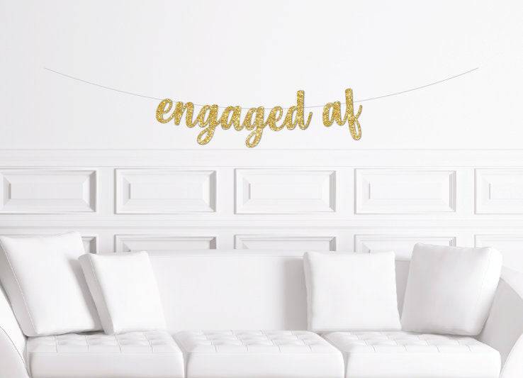 This listing is for one paper, glitter script cursive banner of the popular engagement party phrase: