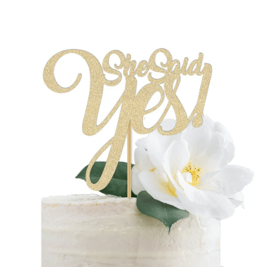 No one can say no to a little glitter—especially when it’s used as a cake topper. Our She Said Yes! Cake Topper is perfect for your engagement party or bridal shower. Our glittery cake topper is an ideal way to add a touch of sparkle and style your cake. Available in a variety of colors, our cake toppers are the perfect finishing touch for any celebration.