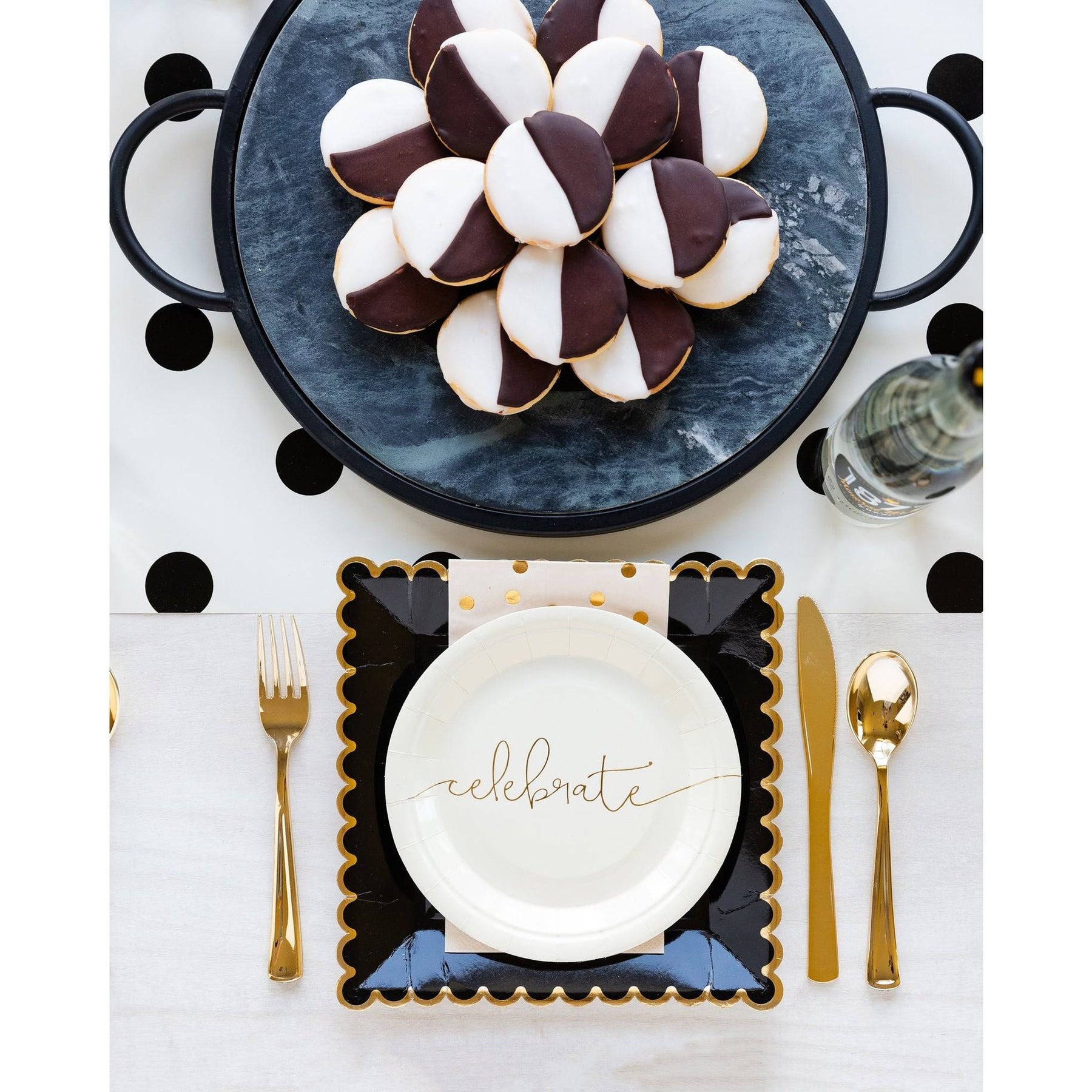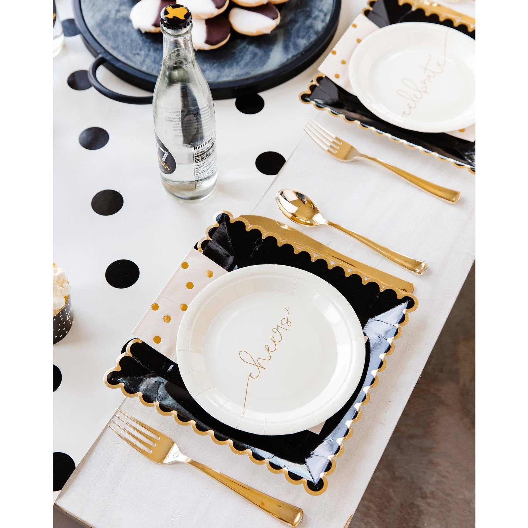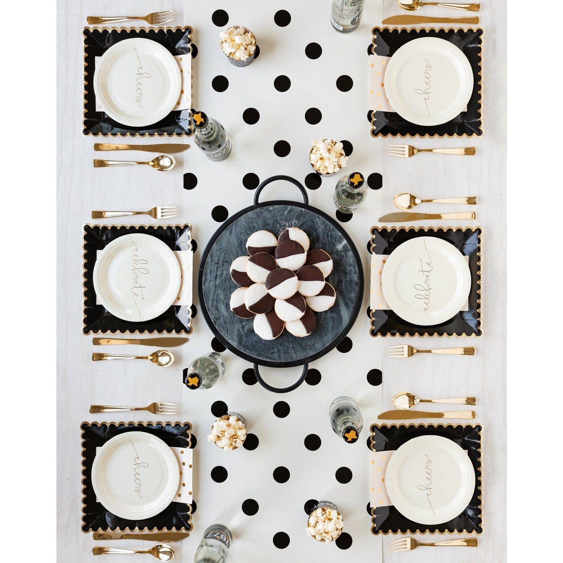 Set the scene with this classic polka dot paper table runner.