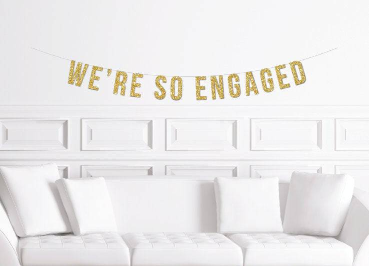 This listing is for one, paper, glitter banner of the popular engagement party phrase:
