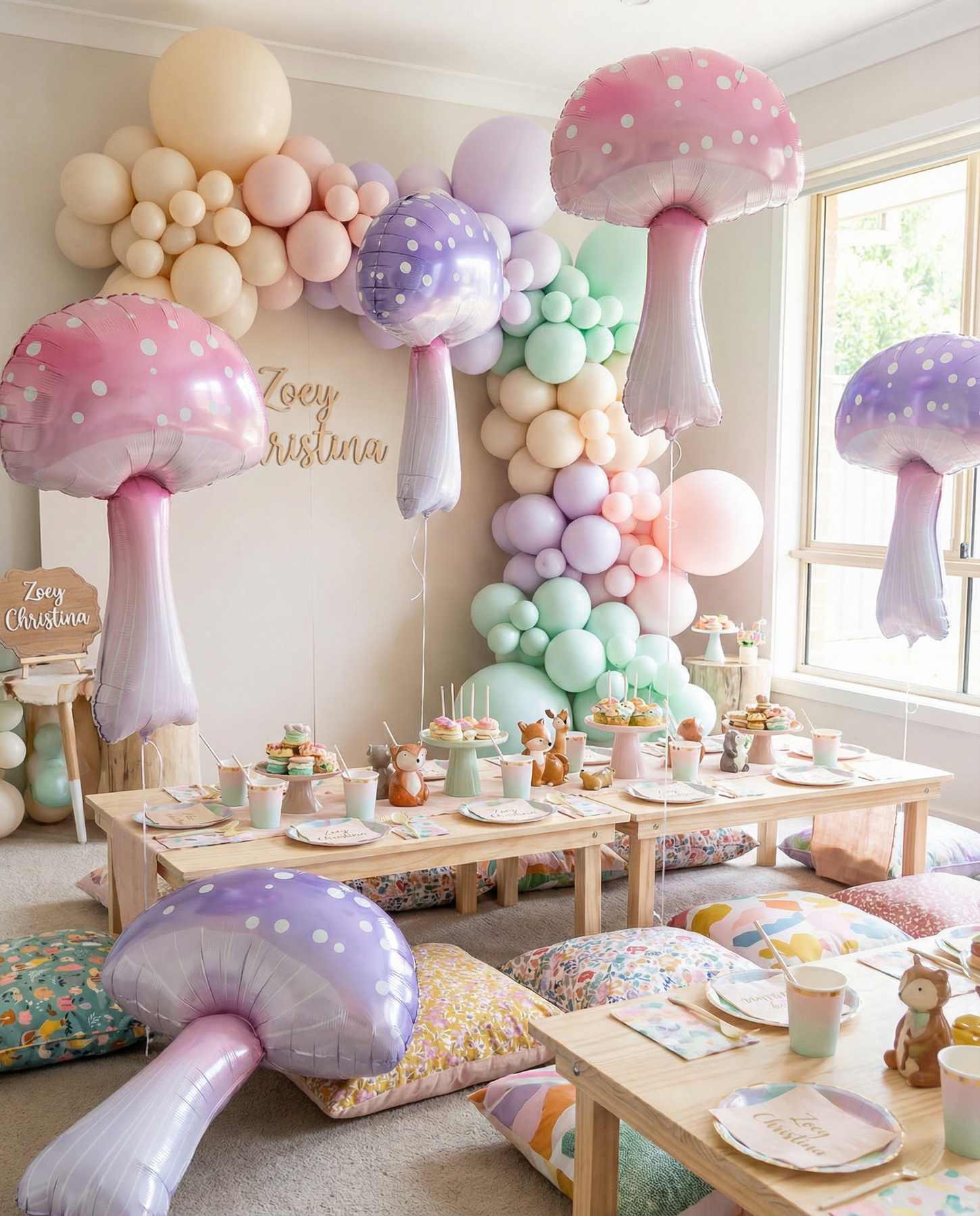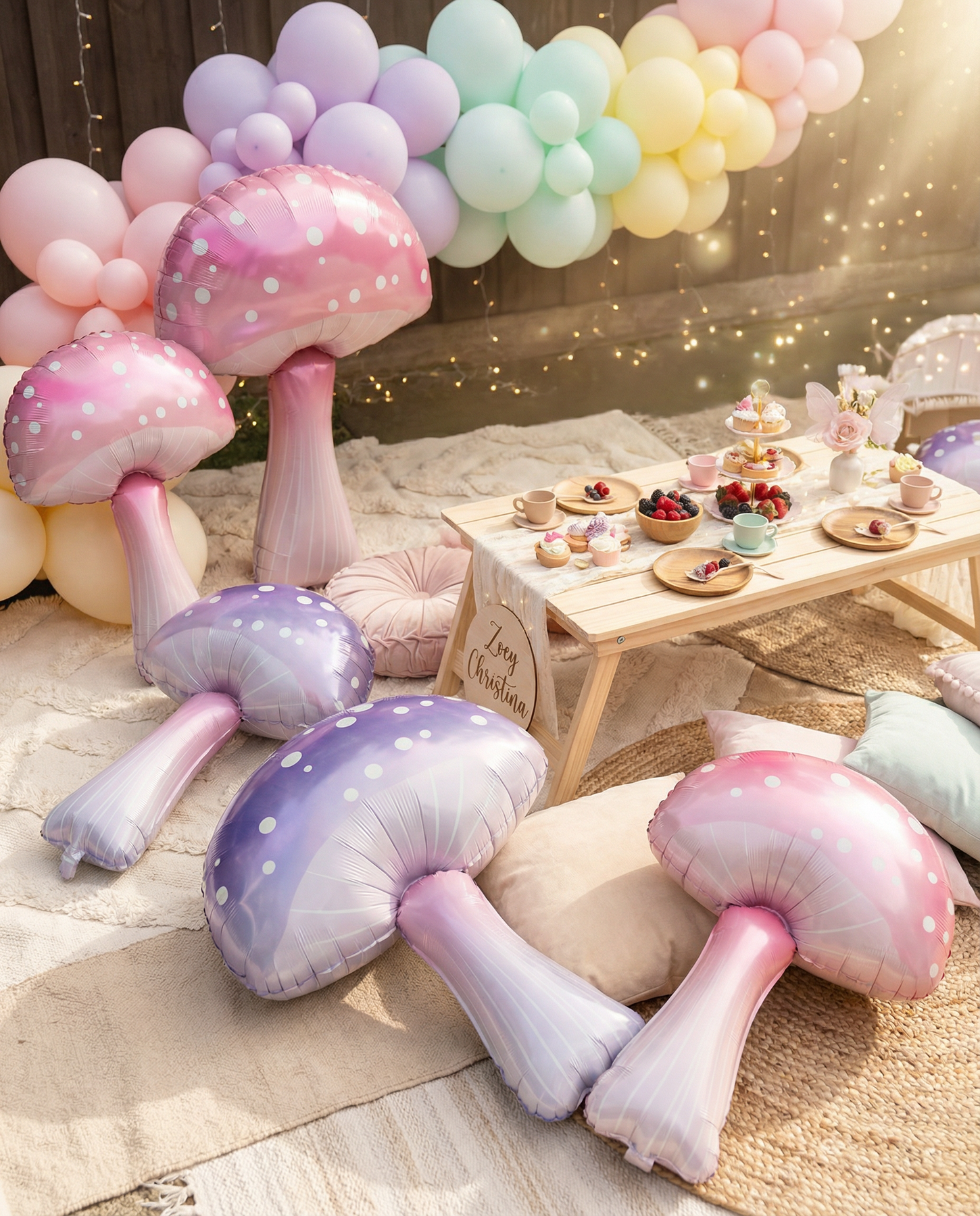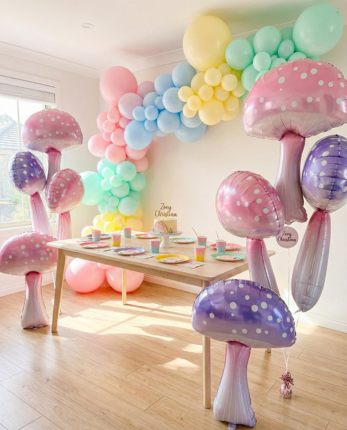 Transform your celebrations with these enchanting pastel mushroom foil balloons. Standing 36" tall by 23" wide, these oversized statement pieces feature delicate pink and lavender hues adorned with charming white polka dots. Perfect for event designers, florists, and party planners, they anchor displays, frame backdrops, and create magical focal points in fairy-tale themes, woodland scenes, and garden-inspired setups.