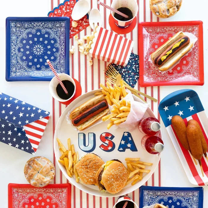 These bold and exciting plates feature a bright blue bandana design that is sure to add a pop of color to your table. Perfect for family and friends to enjoy a Fouth of July BBQ, western themed birthday or other outdoor activities in the warm summer months, these plates are both stylish and practical.