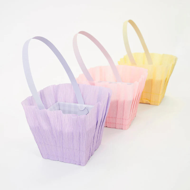 The end of your party even more special with these bright and charming baskets by Meri Meri. They are crafted from crepe paper in 6 fabulous colors, with ruffle detail for a stylish effect.