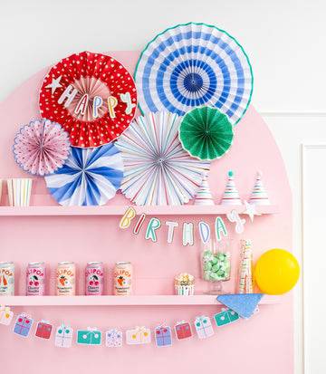 Create a day of whimsy and fun with these bright and colorful party fans. Designed with gold foil accents and delightful patterns this party fan set is the perfect addition to a birthday celebration for your loved one! •