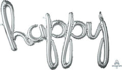 Happy Script Phrase Silver Air Fill Balloon S4035