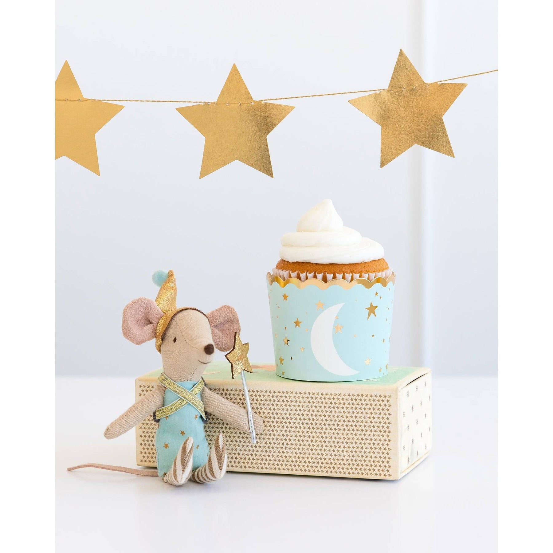 Planning a sweet and traditional shower to welcome baby boy? Then make sure to set the goodie table with these moon and star food cups. Perfect for dressing up cupcakes, these gold foil accented cups will add a timeless, classic touch to any brunch for your favorite mom to be. At 5oz, these food cups are ideal to hold single servings of party treats like popcorn, ice cream, or your favorite finger foods. Make sure that you have your guests covered when they are enjoying goodies from these food cups by including our matching Baby Blue Fringe Cocktail Napkins!