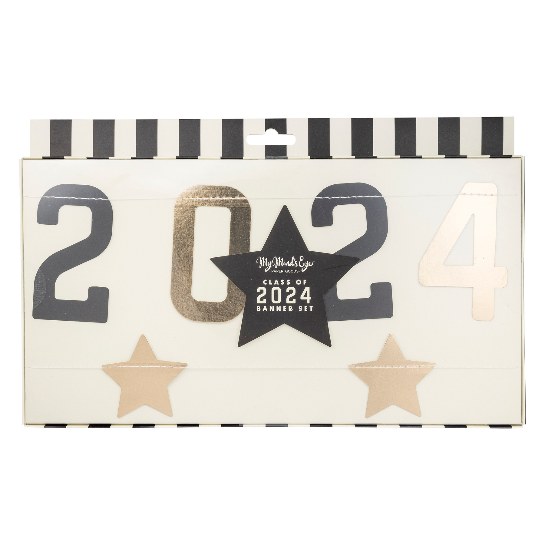 Get ready to party with our Class of 2024 Banner Set! Featuring stars and a fun "Class of 2024" design, celebrate your school pride in style. Add some flair to your graduation festivities with this unique banner set.