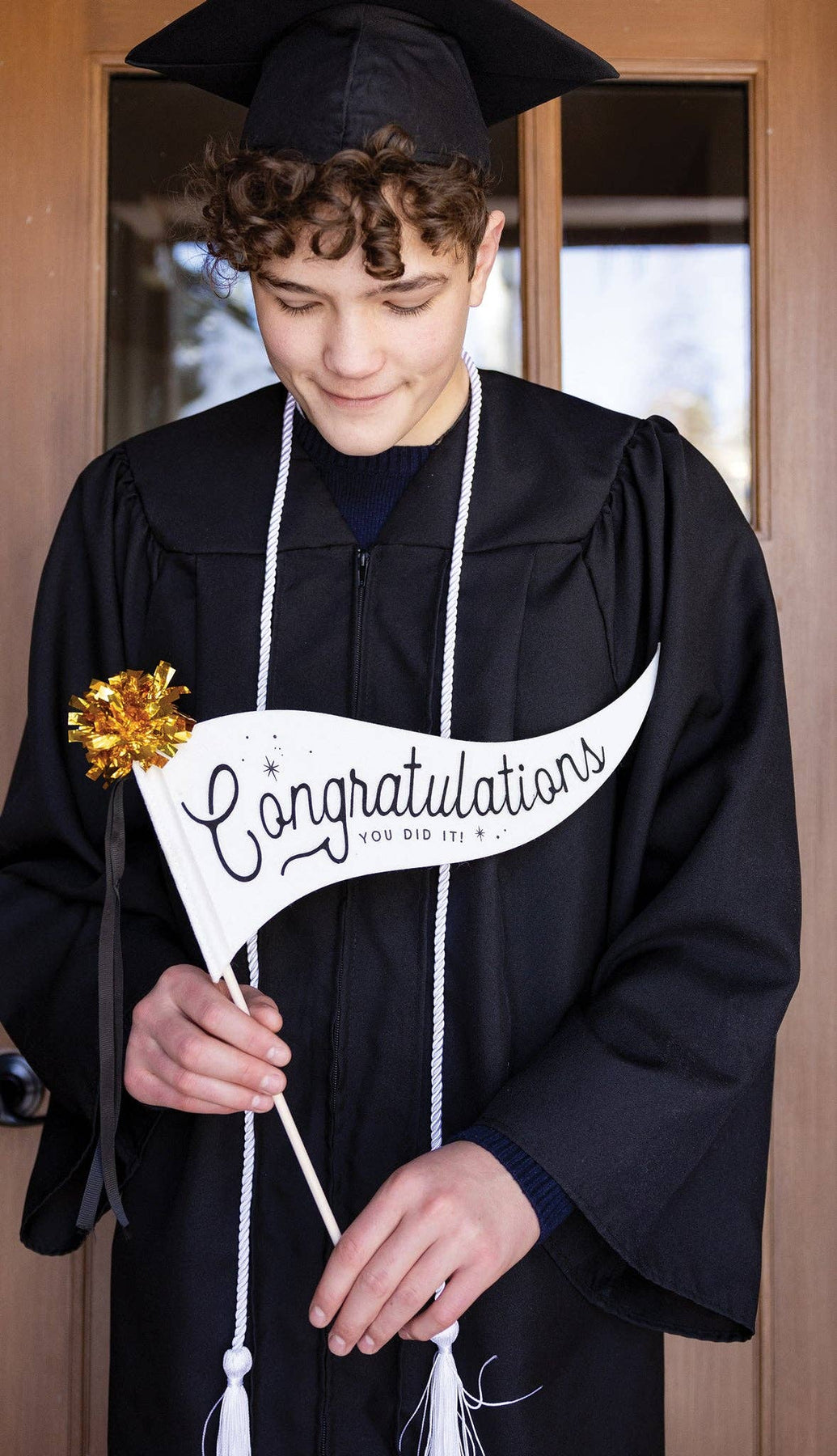 Celebrate with this whimsical Congratulations Felt Pennant! Show off your grad's success in style with this playful decoration. Great for adding a touch of fun to any celebration!