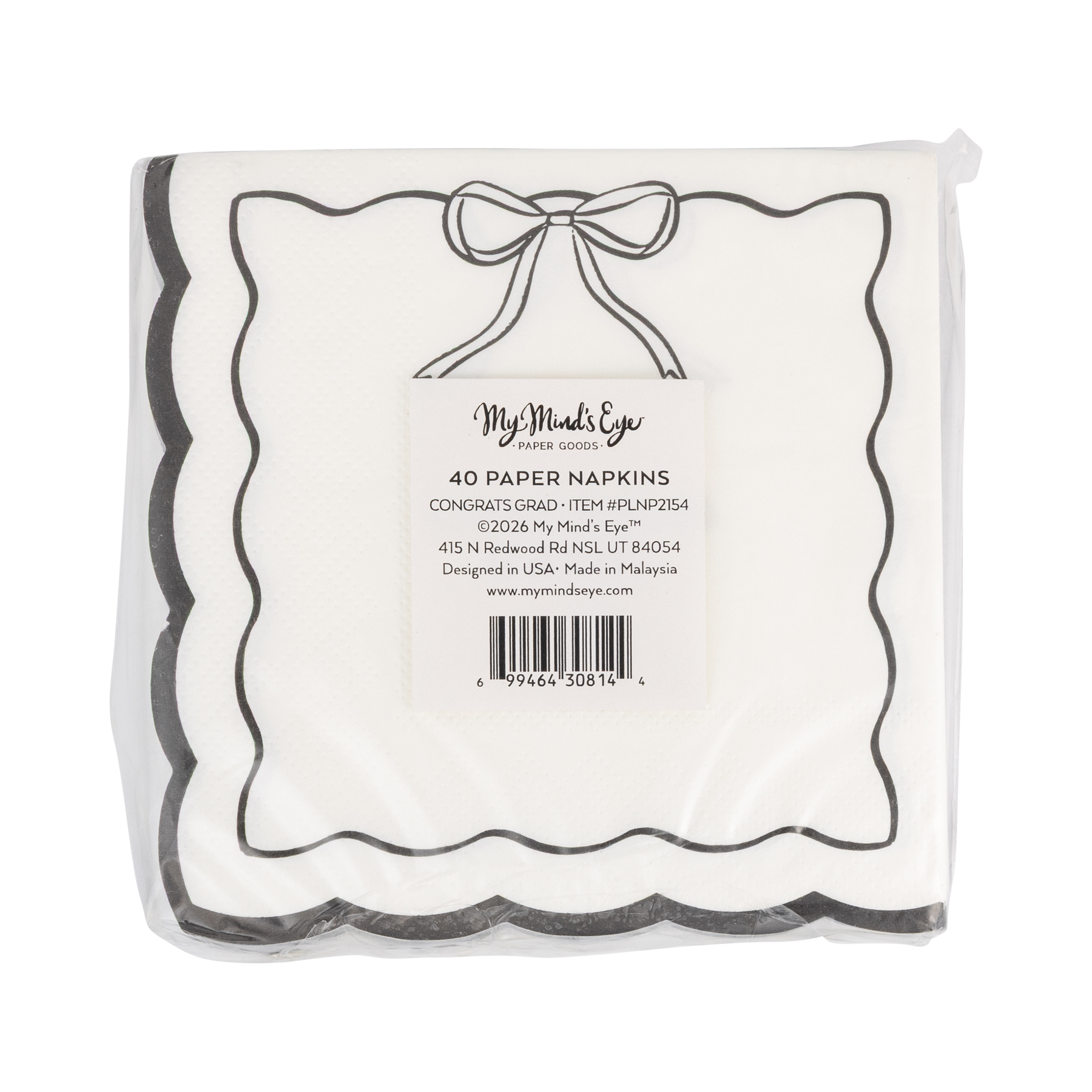 Mark this milestone with napkins as memorable as the occasion. These black and cream cocktail napkins bring understated elegance to every toast and celebration. With 24 napkins featuring two complementary designs, they're sized perfectly for cocktails and appetizers at your Class of 2026 gathering. Sophisticated bow details make them a standout addition to any graduation party.